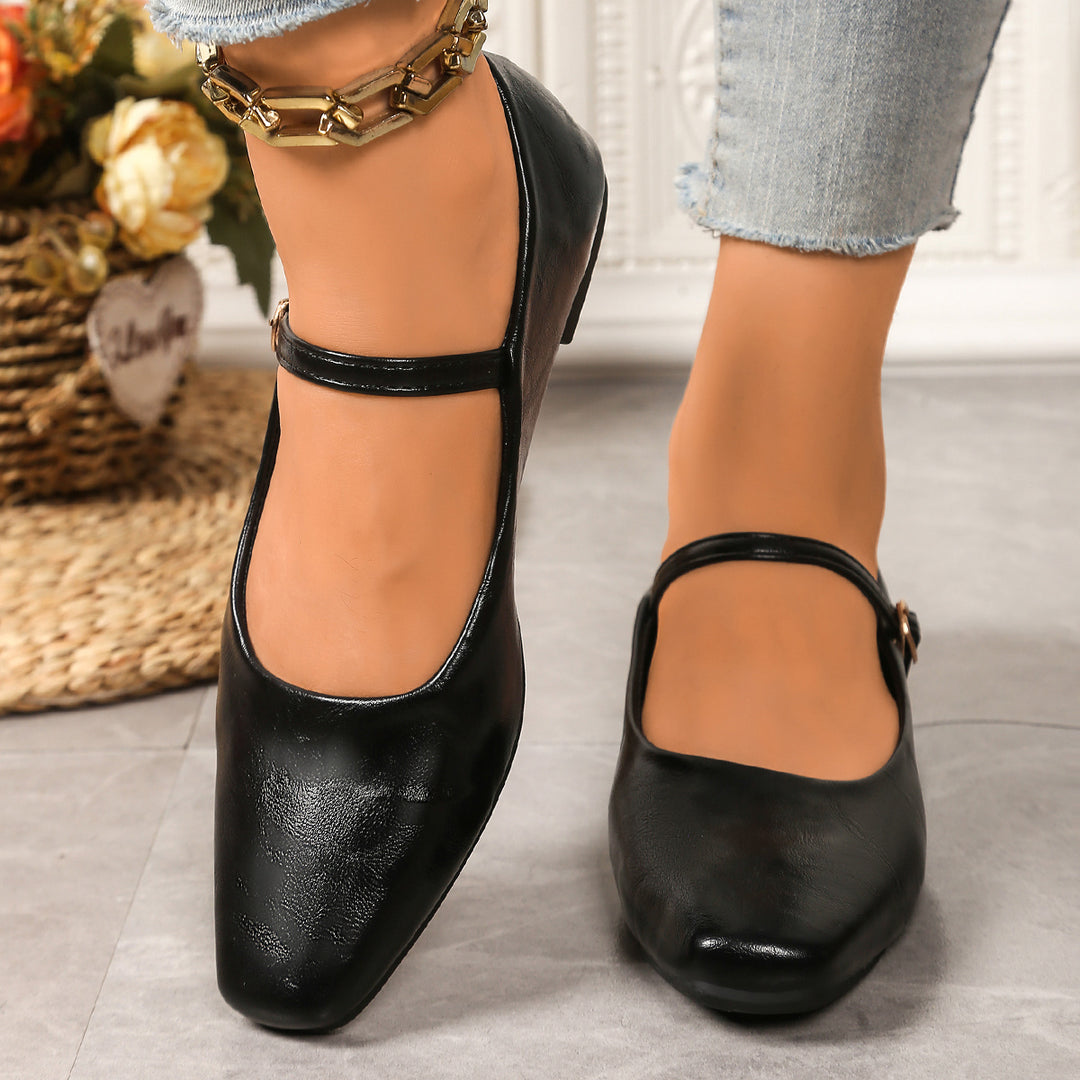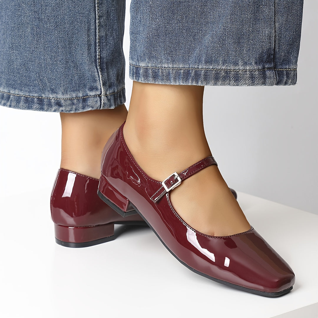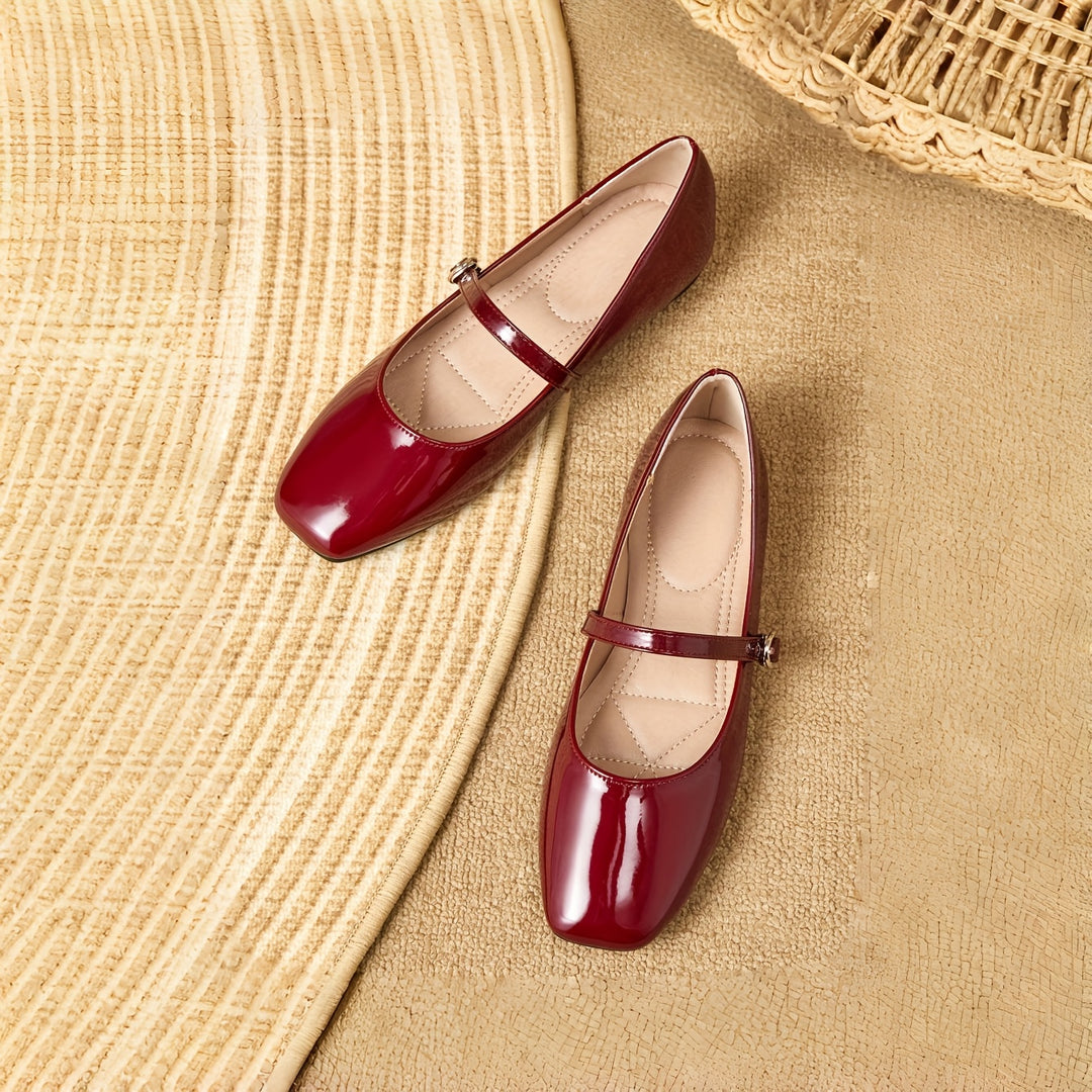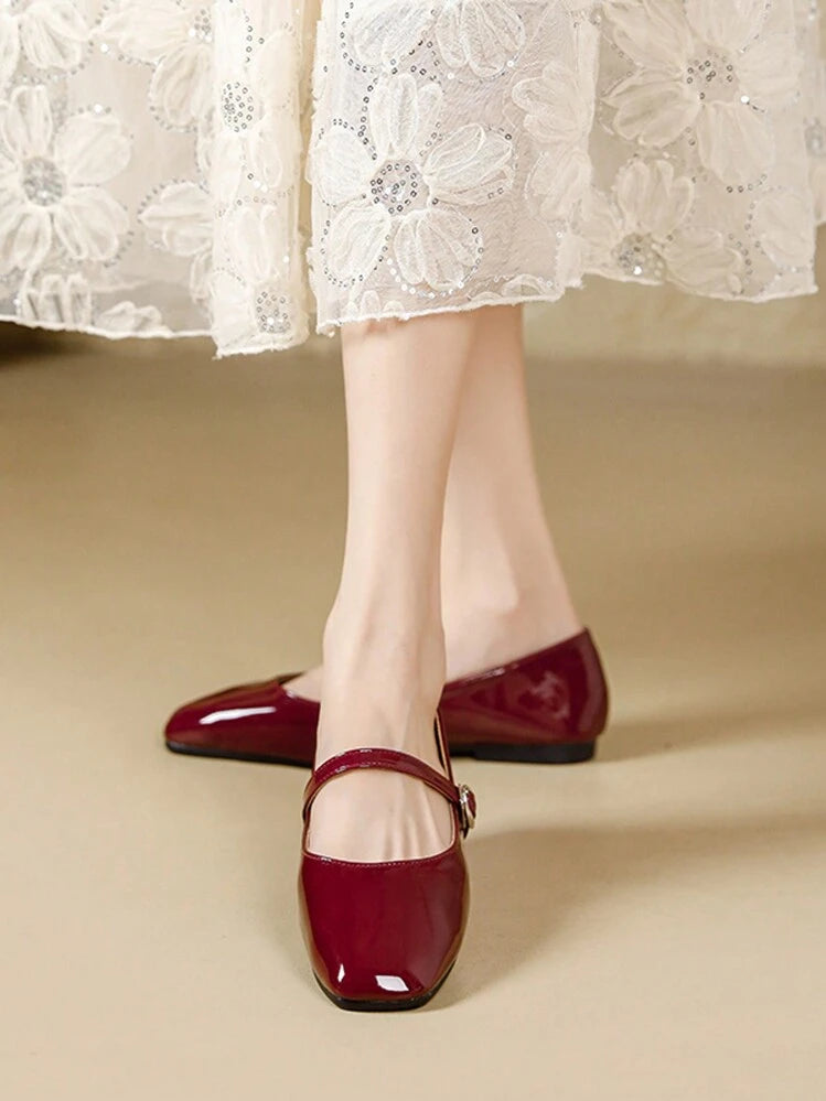 Red Mary Jane Ballet Flats with Adjustable Buckle Strap