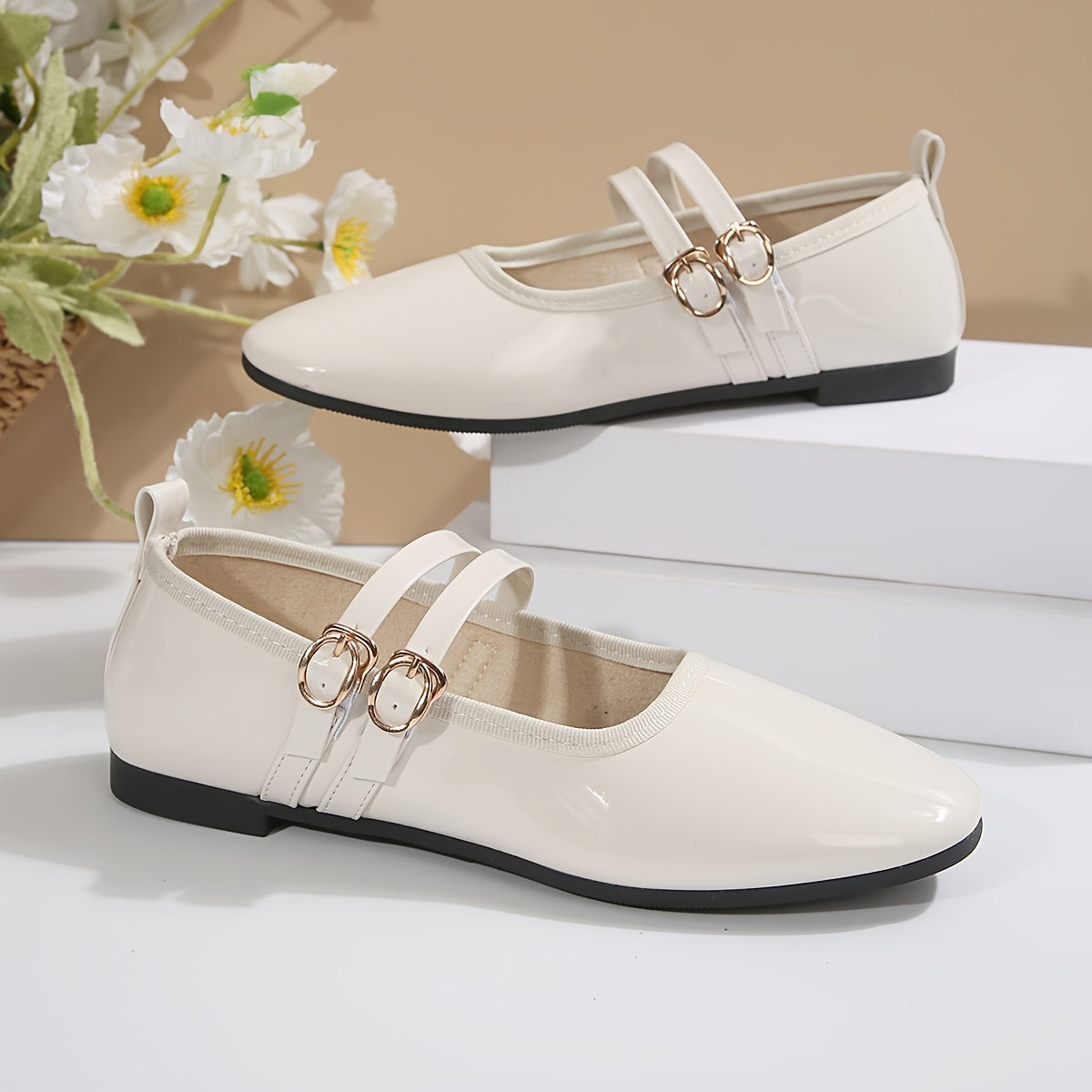Mary Jane Shoes with Double Buckle Strap