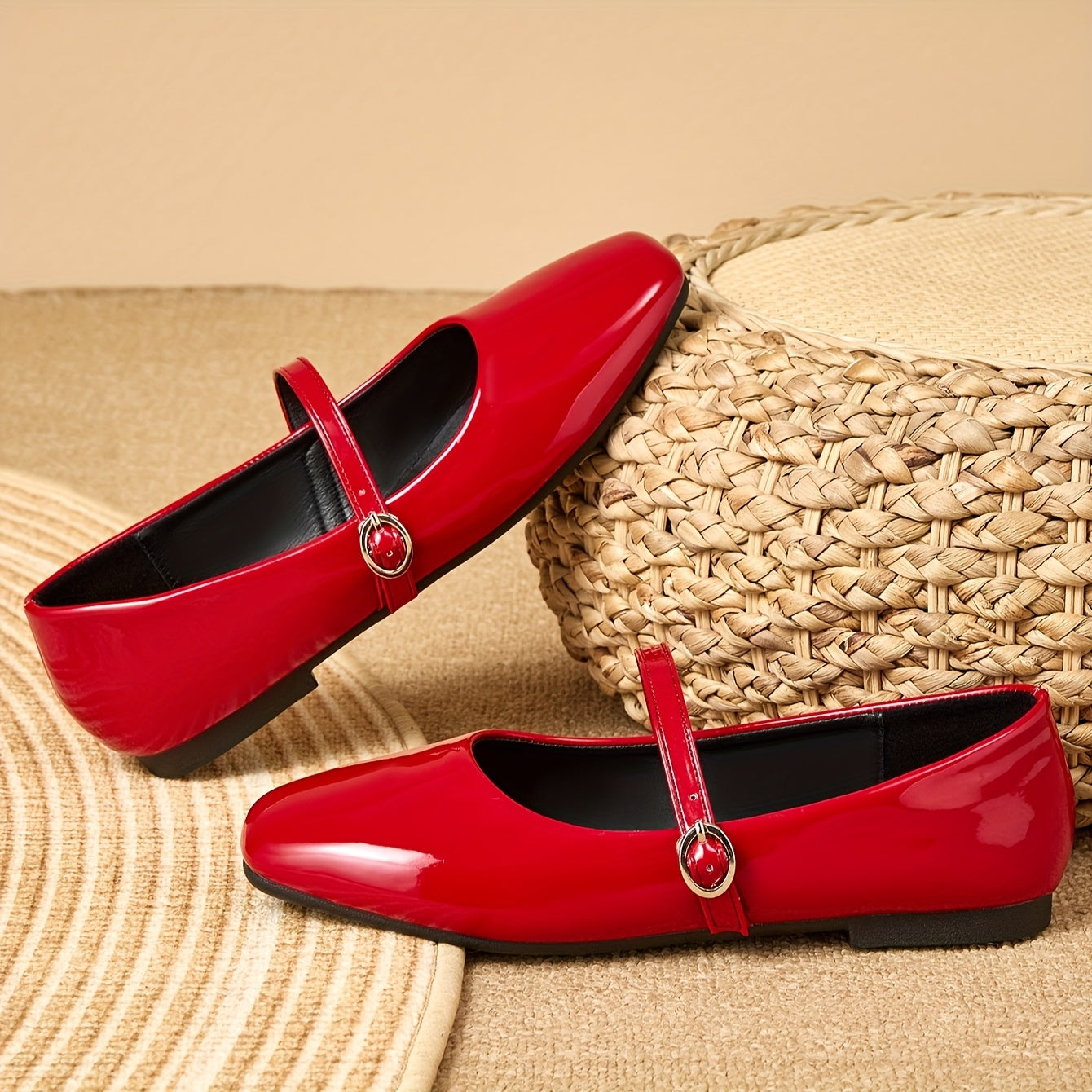 Red Mary Jane Ballet Flats with Adjustable Buckle Strap