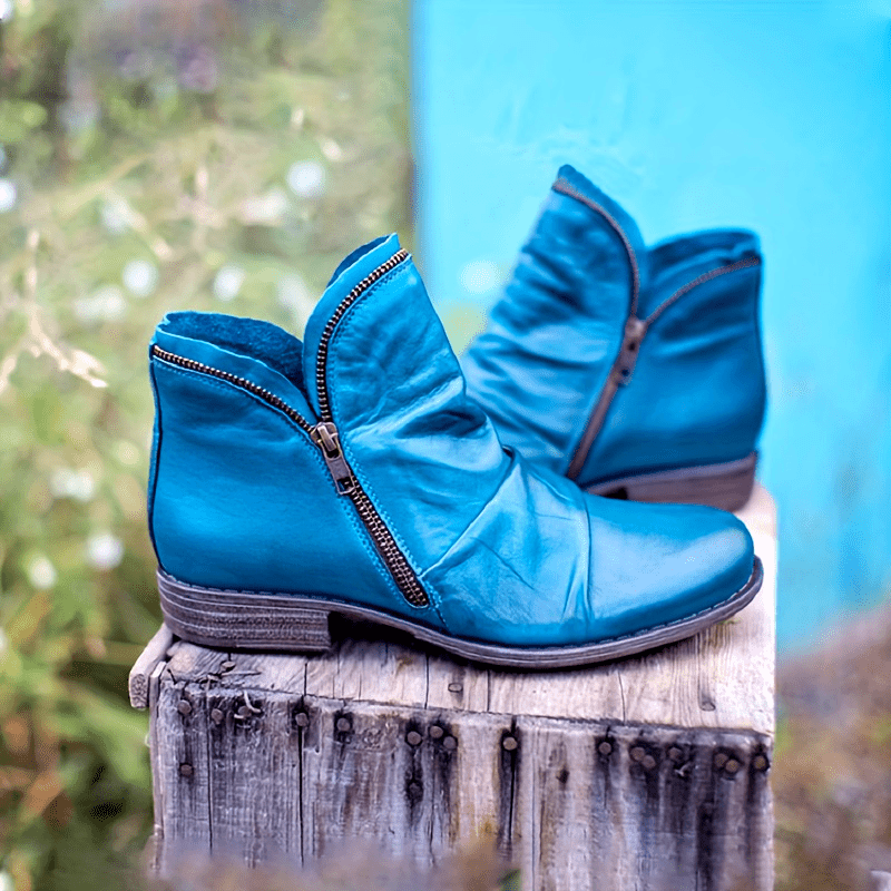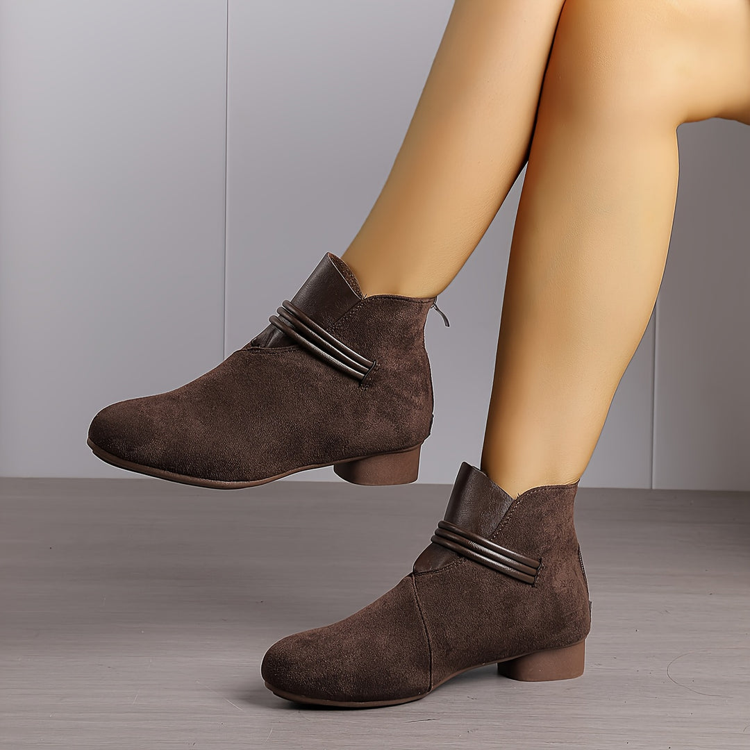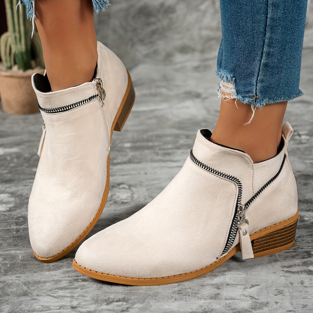 Women's Low Heel Round Toe Double Zipper Ankle Boots