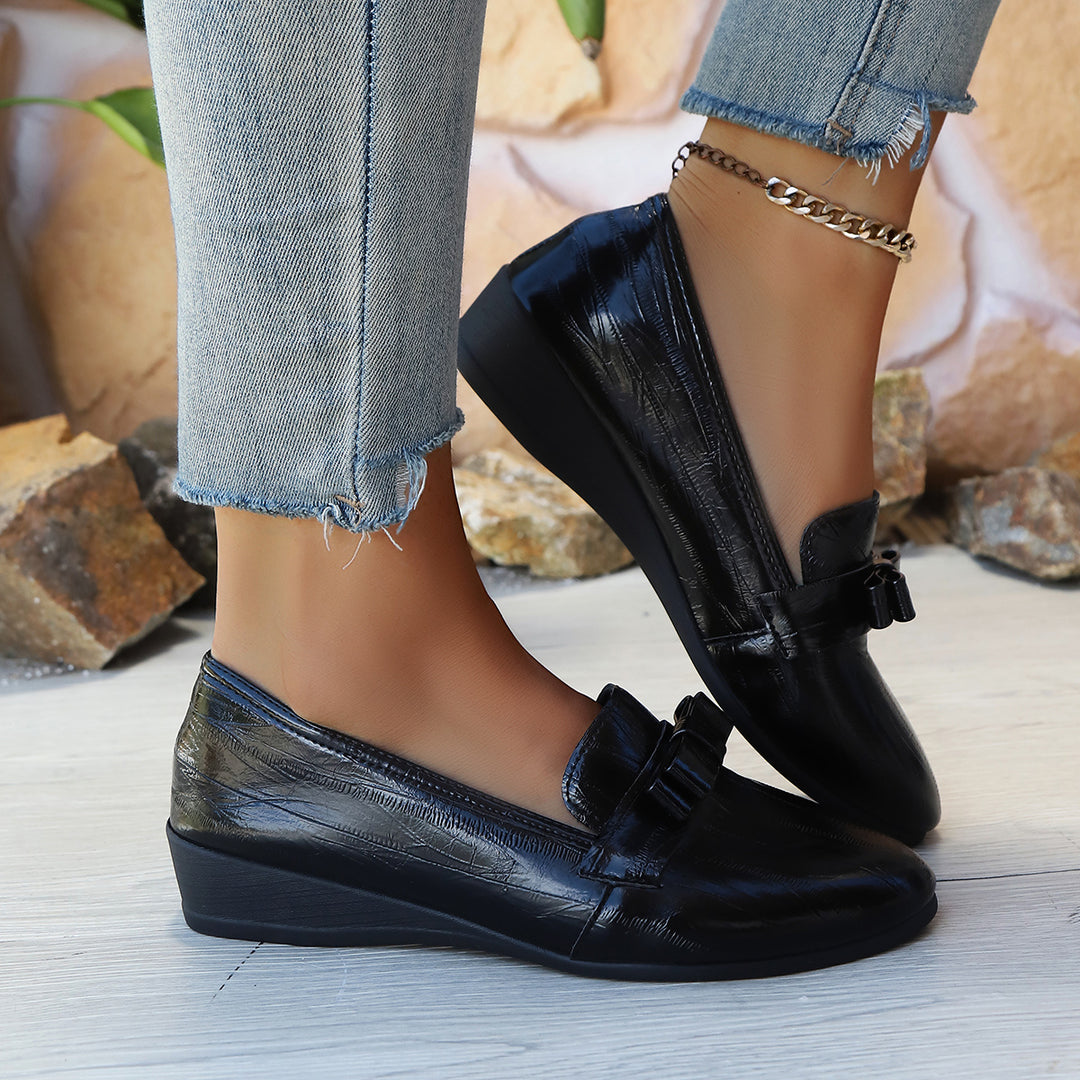 Preppy Style Bow-Decorated Thick Heel Loafers