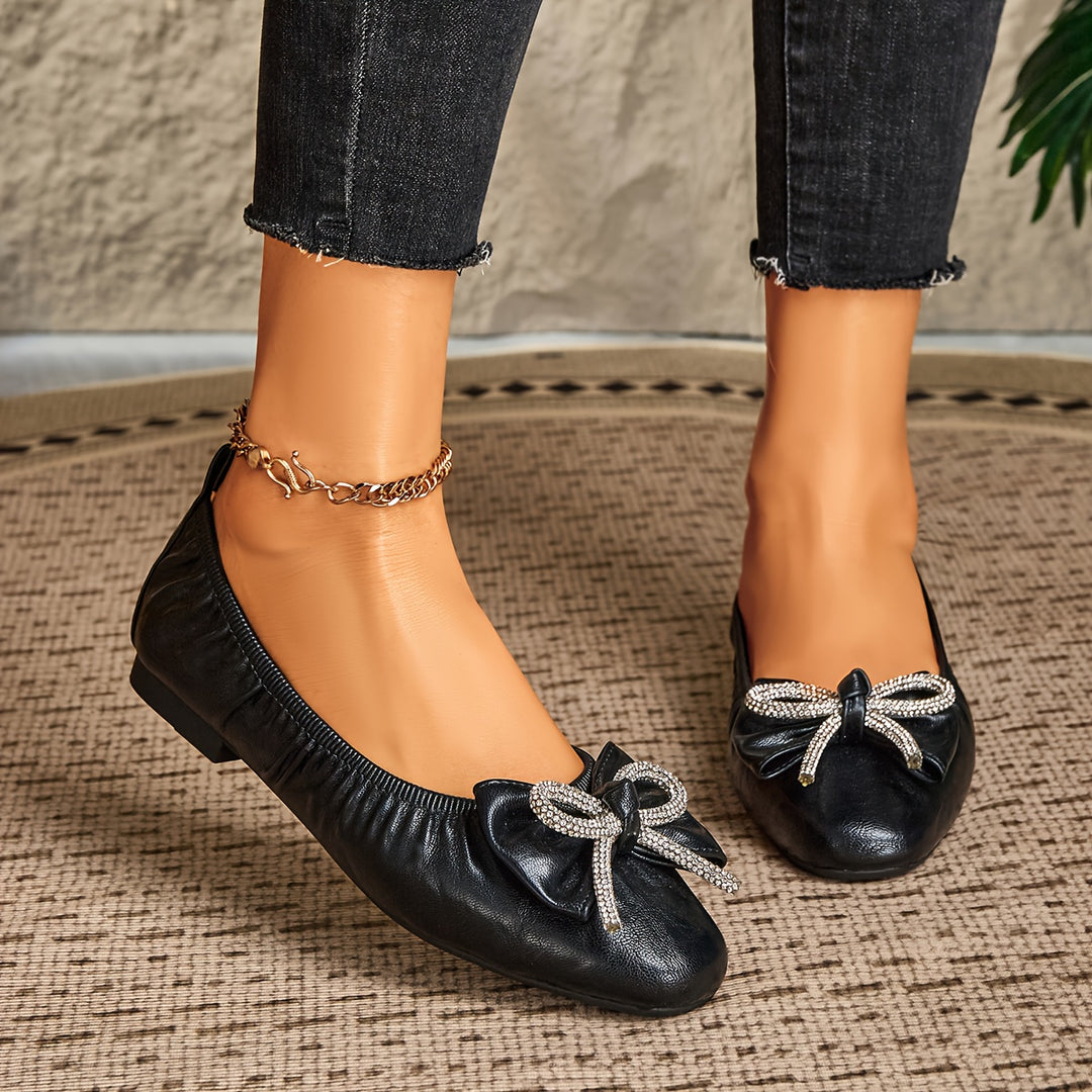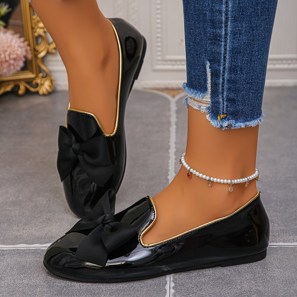 Women's Elegant Black Bowknot Pull-On Ballet Flats