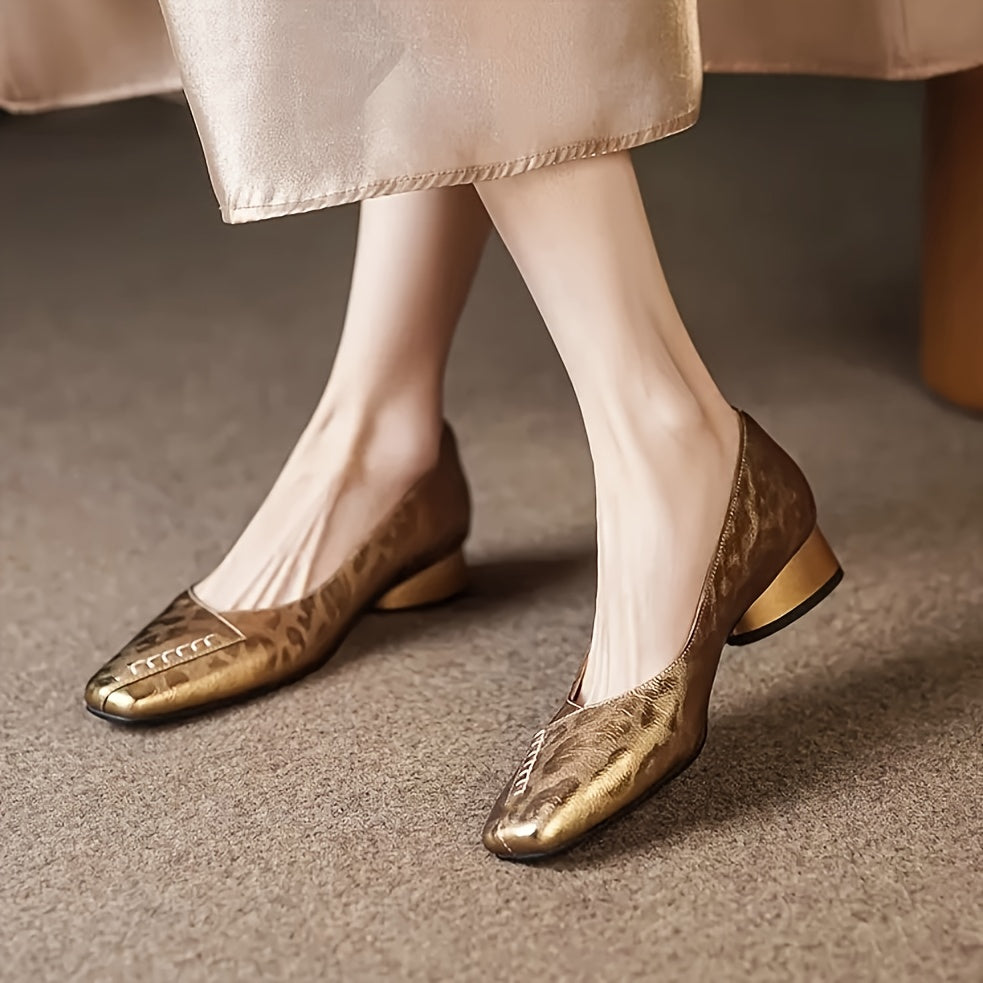Vintage Brown Pointed-Toe Block Heel Pumps